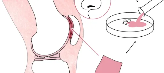 De Zwitserse onderzoekers ontdekten dat kraakbeencellen uit het neustussenschot verrassend goed geschikt zijn om nieuw kraakbeen te vormen. Deze zogenaamde neuschondrocyten kunnen in het laboratorium worden opgekweekt tot een stevig en biologisch actief implantaat, dat qua samenstelling sterk lijkt op het oorspronkelijke kraakbeen in de knie.